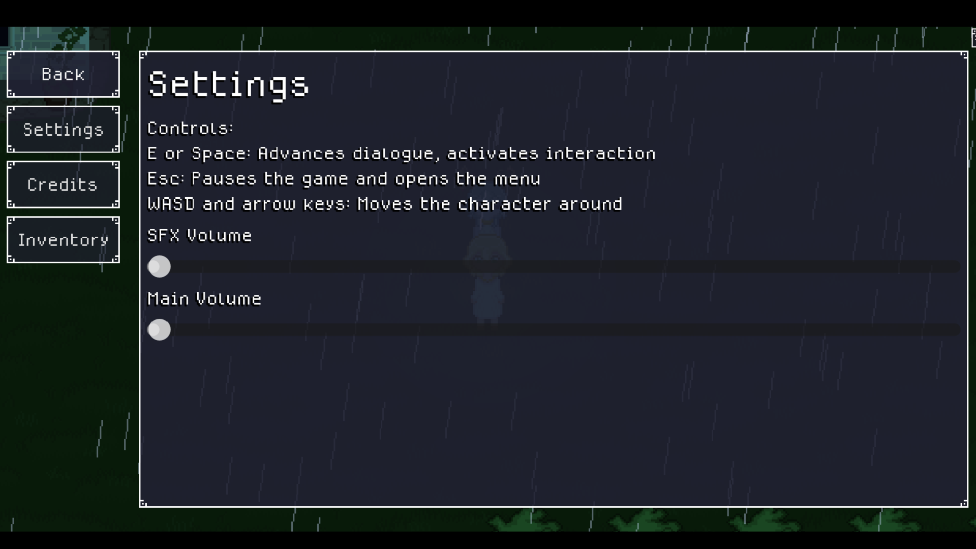 WASD or arrow keys to move, E or Space to interact and progress through dialogue